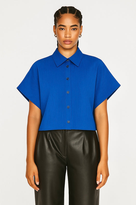 Chemise oversize bleu satinée